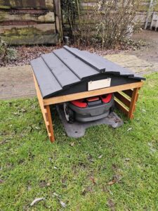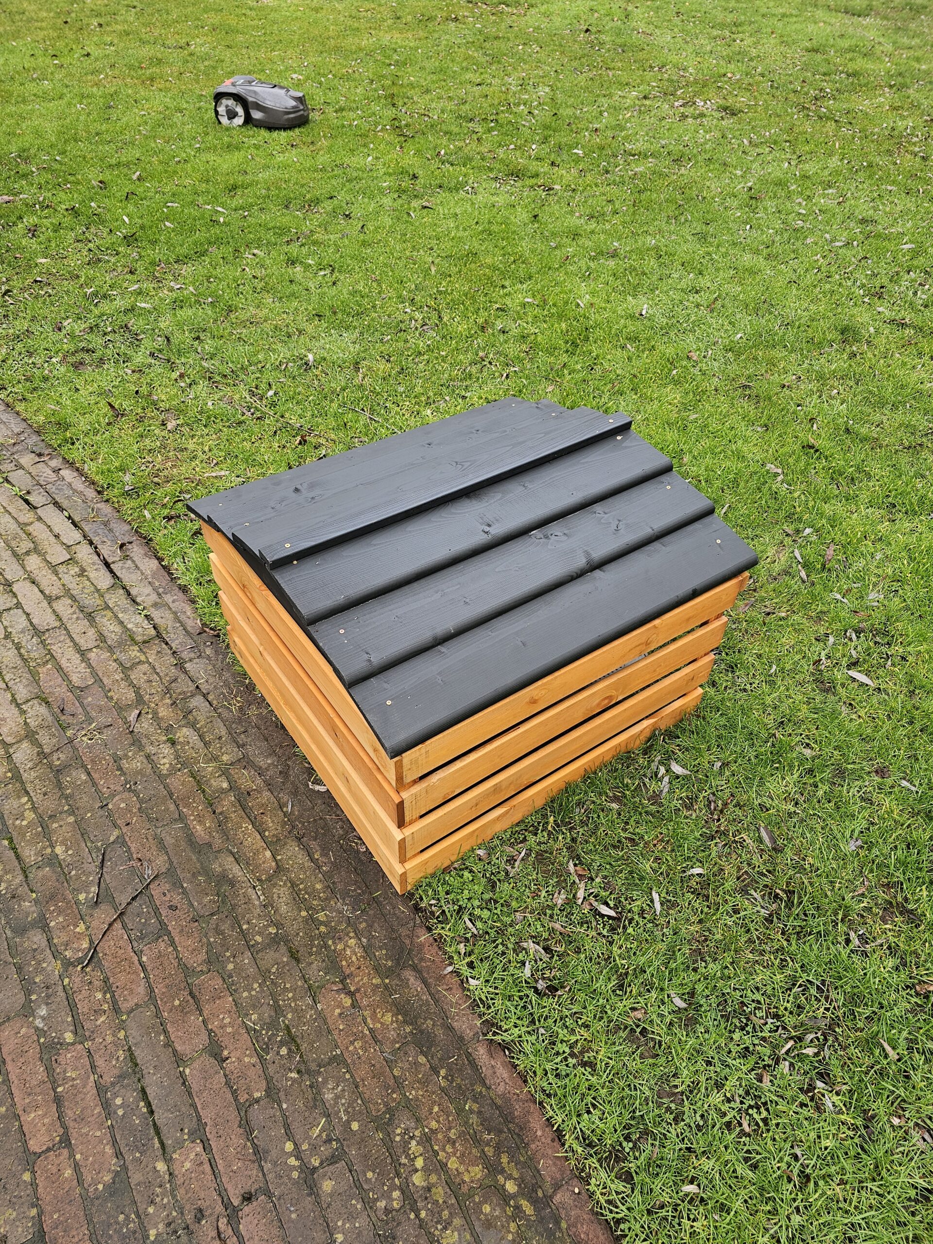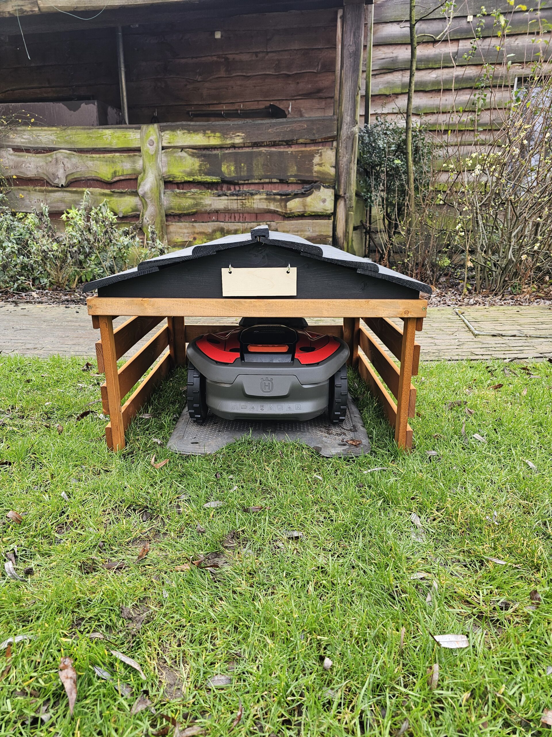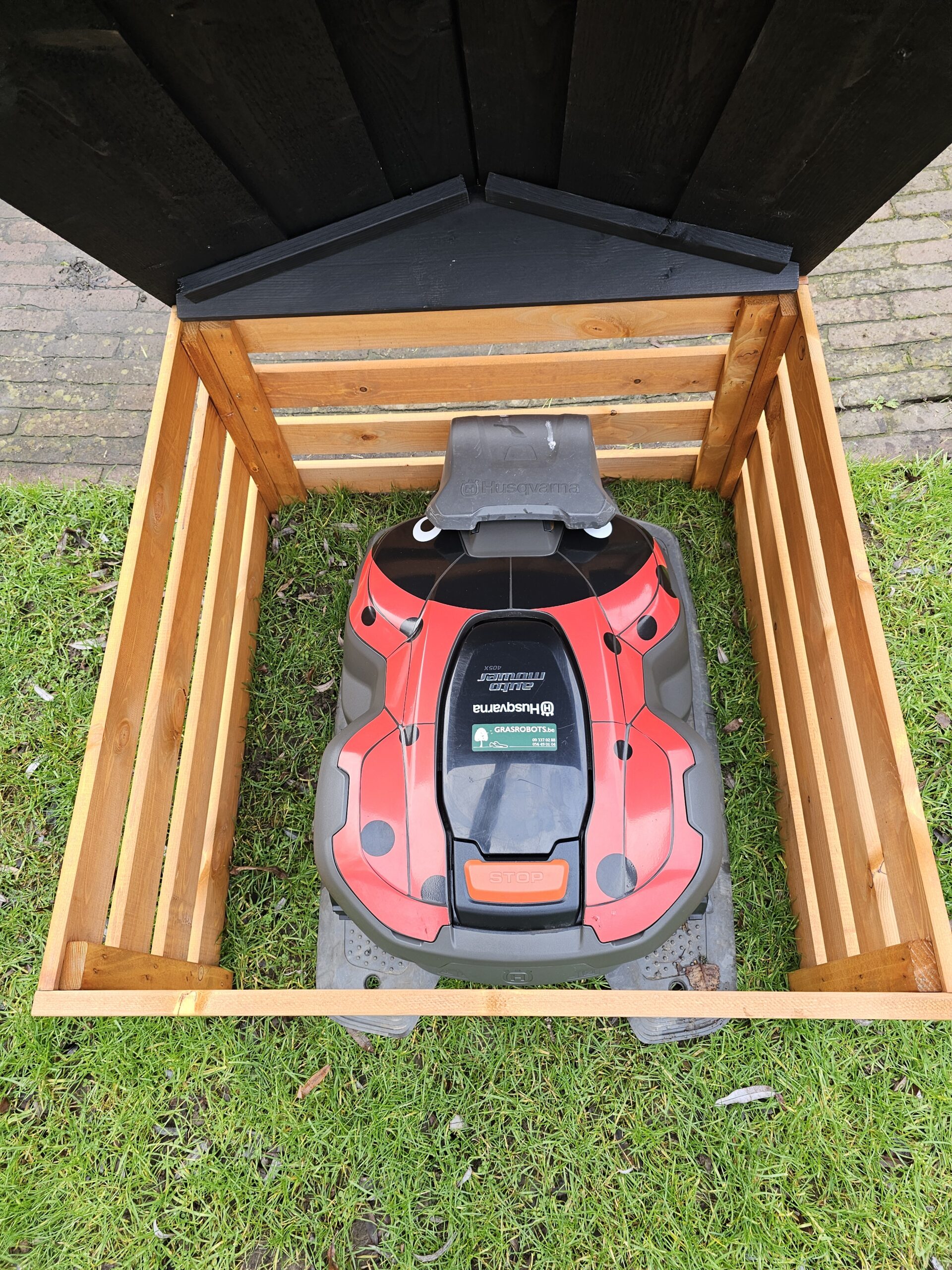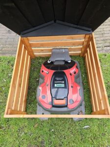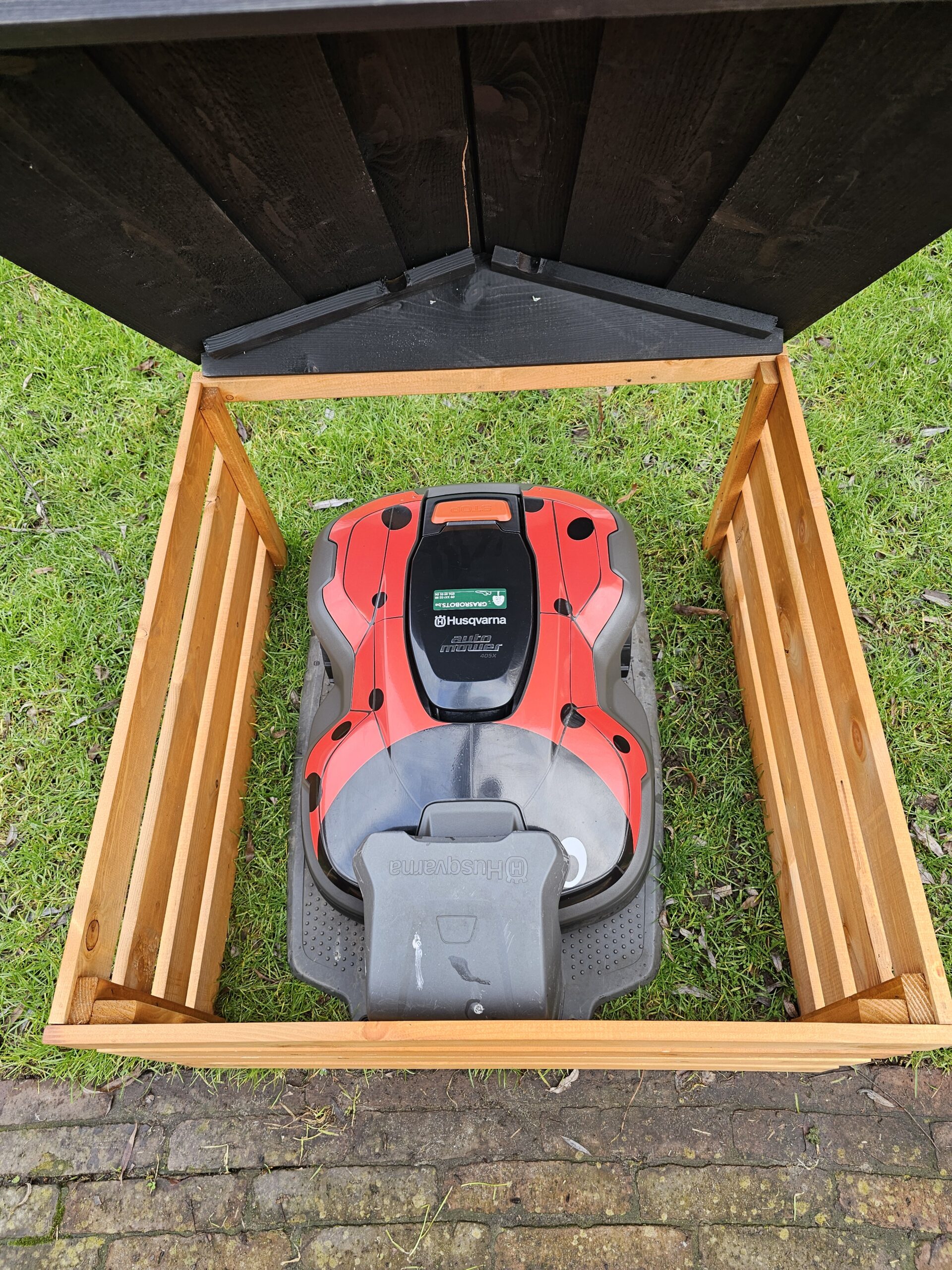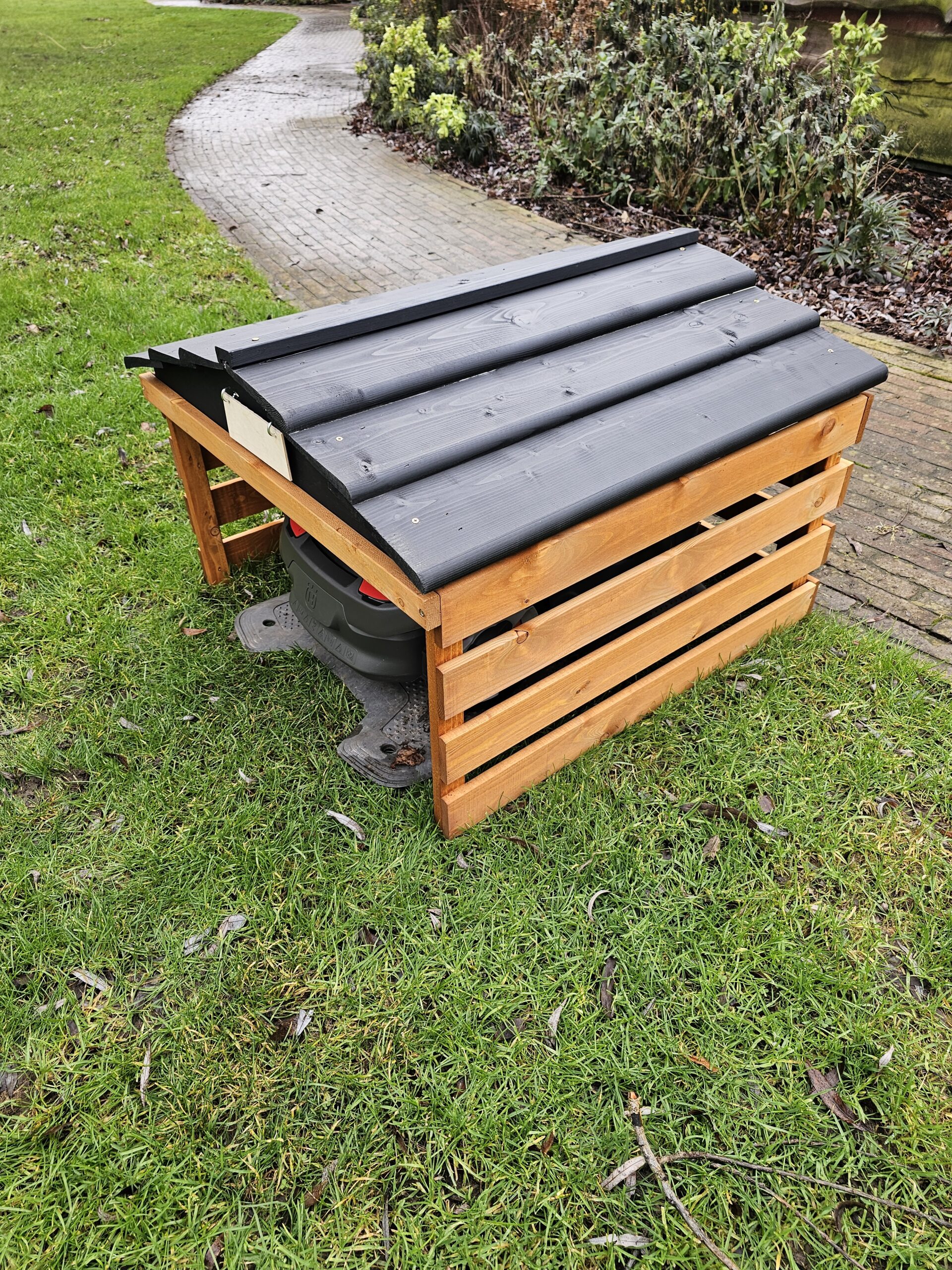 Bescherm je robotmaaier tegen regen, zon, vuil en andere weersinvloeden met deze stijlvolle houten robotmaaiergarage.