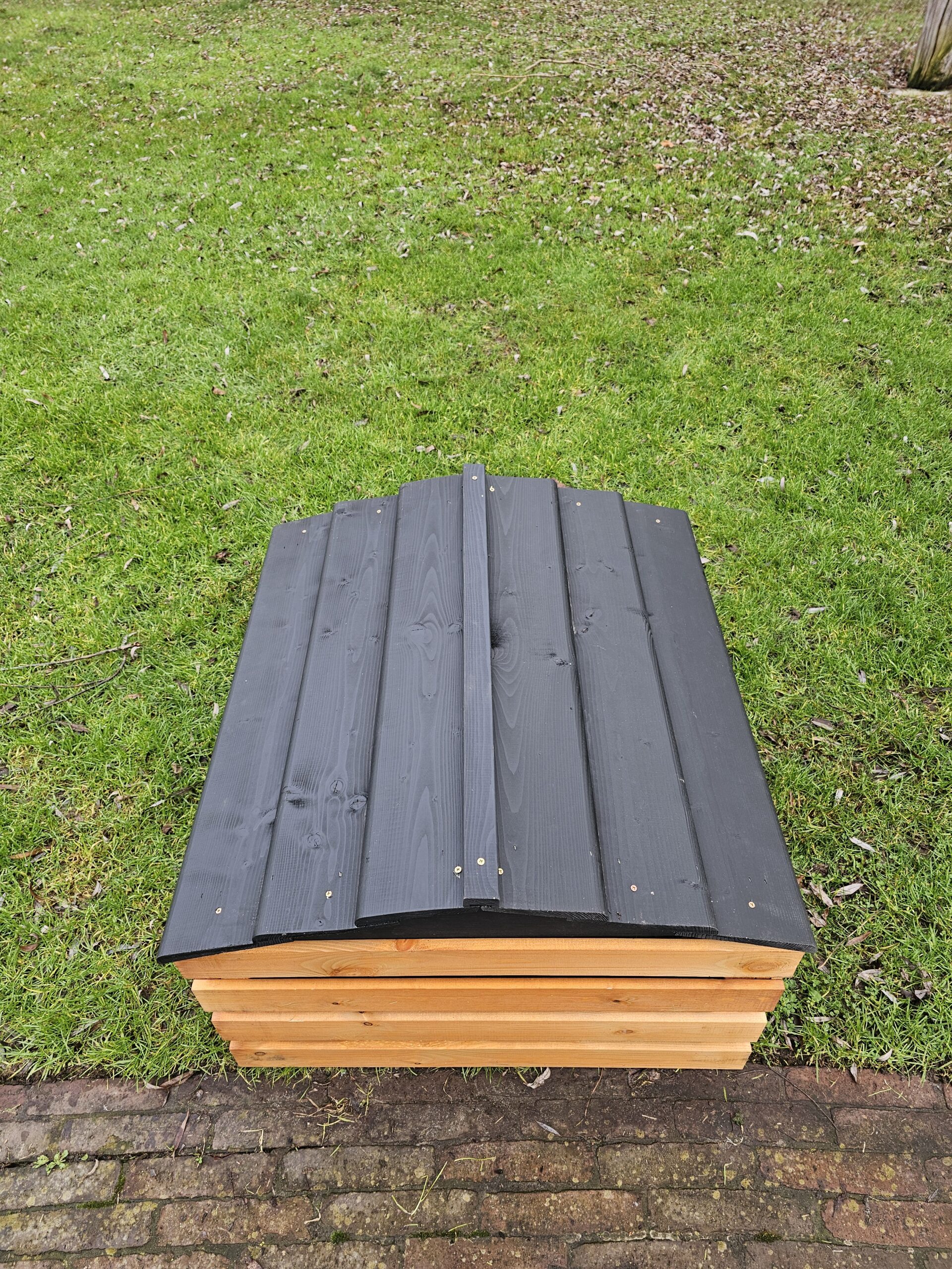 Het huisje is gemaakt van Noord-Europees vuren-hout met een watergedragen buitenlakafwerking. Door deze afwerking krijgt het hout extra bescherming tegen vocht en UV-straling, wat de levensduur buitenshuis aanzienlijk verlengt. Met licht onderhoud, zoals het opnieuw aanbrengen van een beschermlaag om de 2 à 3 jaar, kan de levensduur nog aanzienlijk verlengd worden.