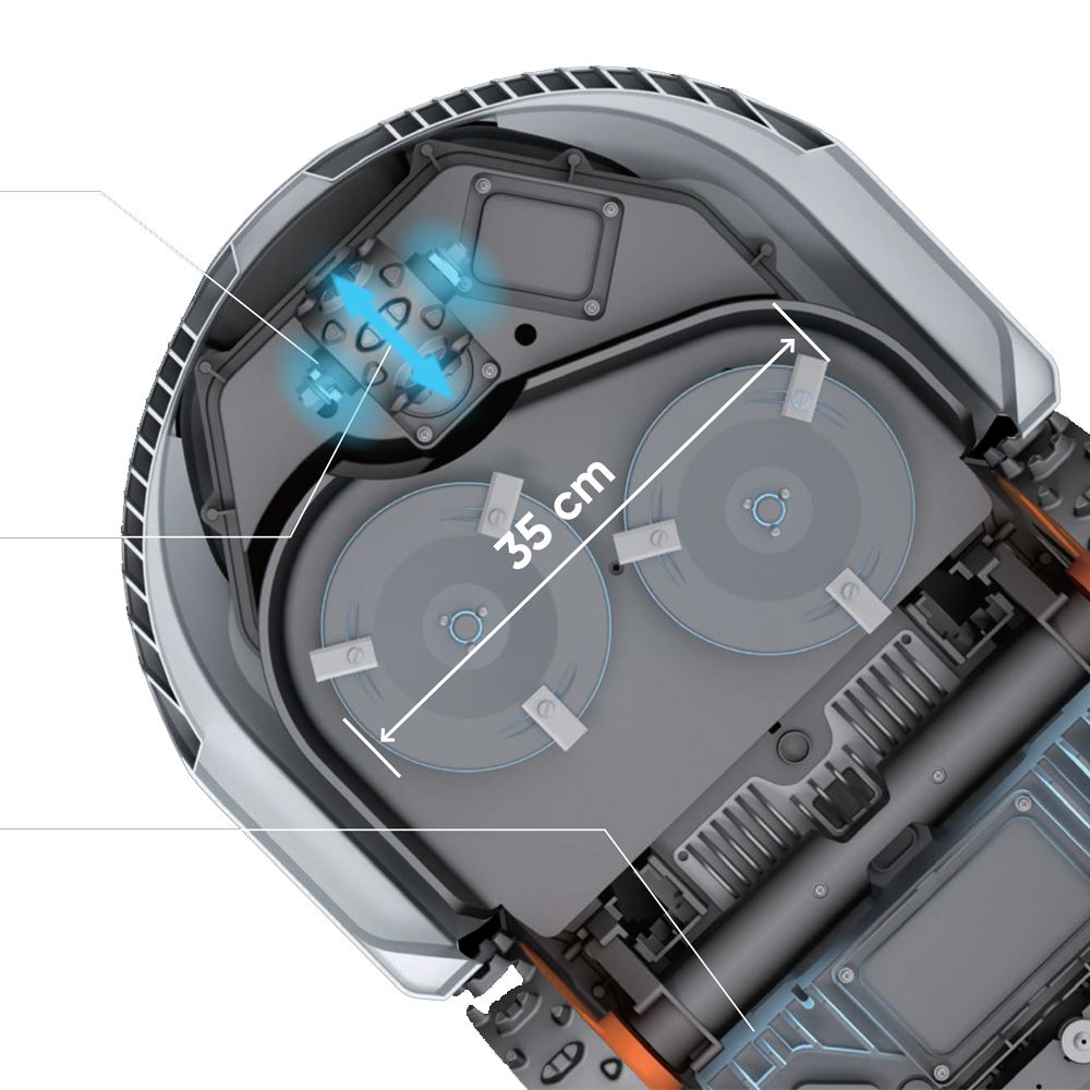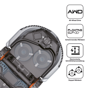 De Sunseeker Elite X7 Plus is een krachtige, draadloze robotmaaier voor grote gazons tot 6.000 m². Dankzij het geavanceerde AONavi™-navigatiesysteem (RTK-GNSS + VSLAM) en Vision AI navigeert hij nauwkeurig, vermijdt hij obstakels en werkt hij zonder begrenzingsdraad. Met vierwielaandrijving (AWD) kan hij steile hellingen tot 70 % (35°) aan. De dubbele floating maaischijven (35 cm) garanderen een brede, efficiënte maaibeurt, terwijl je via de app meerdere zones (tot 15) instelt en de maaihoogte (20‑100 mm) elektronisch aanpast. De behuizing is waterdicht (IPX5), de geluidsproductie laag, en optioneel is een 4G + GPS-module beschikbaar voor extra beveiliging.