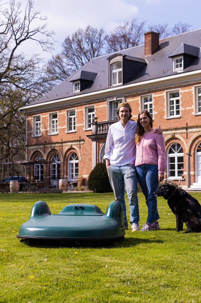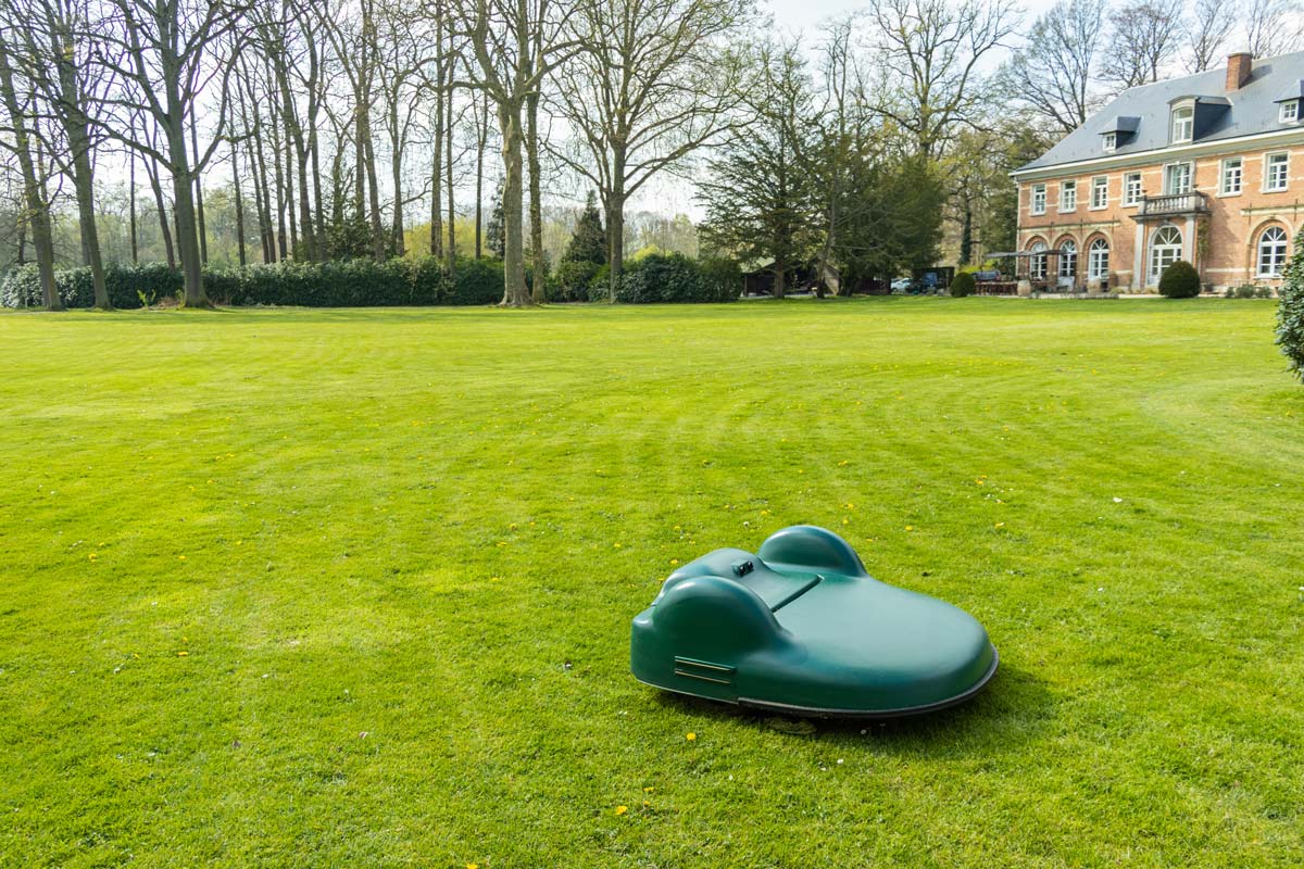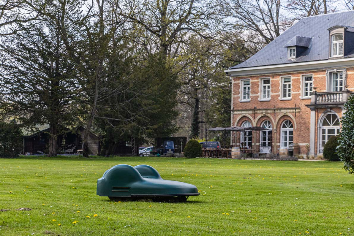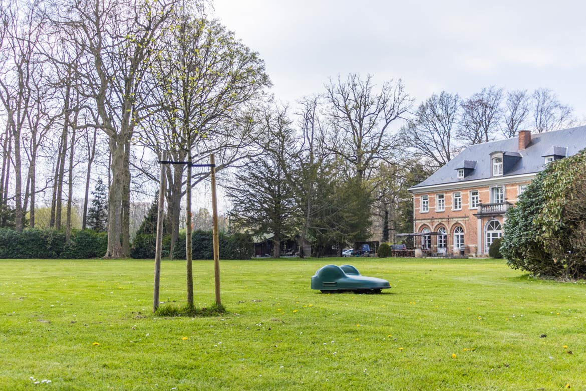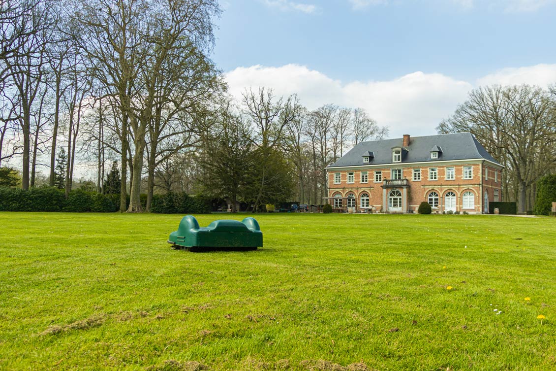 Na enkele offerteaanvragen bij verschillende spelers kwam GRASROBOTS.be als beste optie uit de bus. In samenspraak werd een gereviseerd toestel van Belrobotics aangeraden. De keuze voor refurbished maakte het mogelijk om aan een schappelijke prijs toch een toestel te vinden dat de grote oppervlakte moeiteloos kan onderhouden. Guillaume vertelt: “We hebben ons laten bijstaan door het team van GRASROBOTS.be en zijn zo bij een Belrobotics Bigmow uitgekomen.” Momenteel maait het toestel van Belrobotics overdag en zorgt het voor het onderhoud van de grote grasvlakte voor het kasteelgebouw.